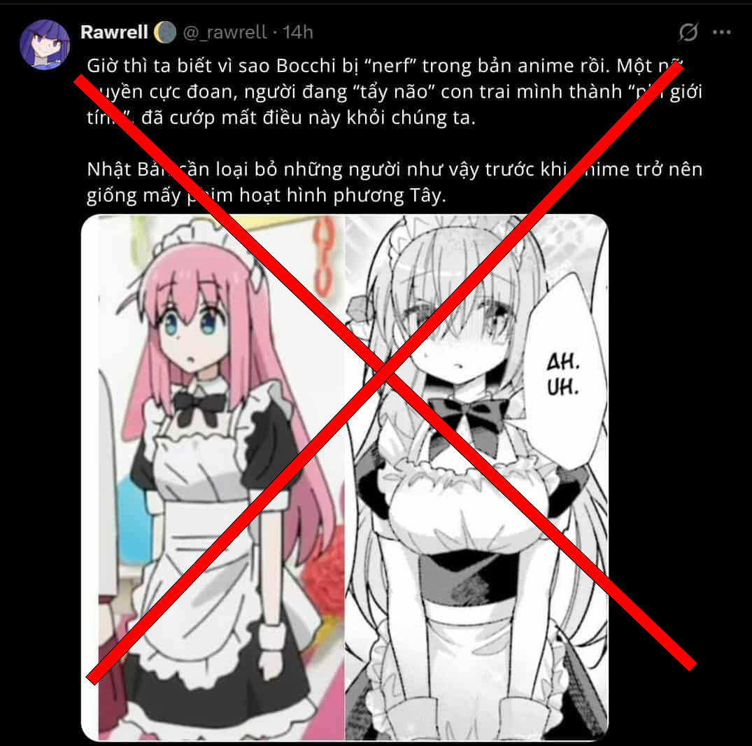Hiện tại nổi lên một thông tin gây lệch lạc, đáng báo động, là “biên kịch của Bocchi loại bỏ fs ra khỏi tác phẩm”.